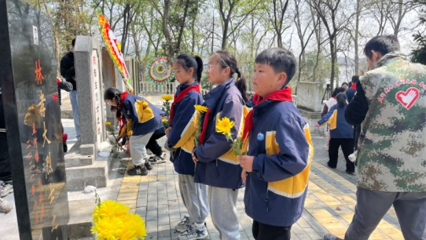 今日神州看奋起,墓群千古慰忠魂。通过此次清明祭扫主题实践活动,少先队员们再一次接受了深刻的爱国主义教育和革命精神的洗礼。孟小全体少先队员将以英雄模范为榜样,听党话、跟党走,树立一个个红色路标,为自己的人生导航,为实现中华民族伟大复兴的中国梦而时刻准备着! (撰稿:雷佳敏 摄影:邱瑶 审核:邱瑶) |