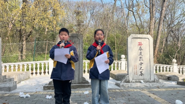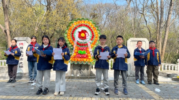 童心向党 分享感悟 活动最后,四(1)中队王子萱同学接受常州广播电视台专题采访,王子萱同学表示: 作为新时代的少年,站在烈士墓前,我们深感革命先烈的伟大与崇高。他们为了新国家的成立和人民的幸福,英勇斗争,不惜牺牲自己的生命。这种精神令人肃然起敬,也激励着我们不断前行。 通过缅怀先烈,我们要珍惜现在的和平与幸福。这些美好生活都是先烈们用鲜血和生命换来的,缅怀先烈不仅仅是形式上的纪念,更要将他们的精神内化为我们自己的力量。我们要学习先烈们的奋斗精神和爱国情怀,将这种精神融入到我们的日常生活和学习中,勤奋学习,掌握科学文化知识,为实现中华民族伟大复兴的中国梦而努力奋斗。
