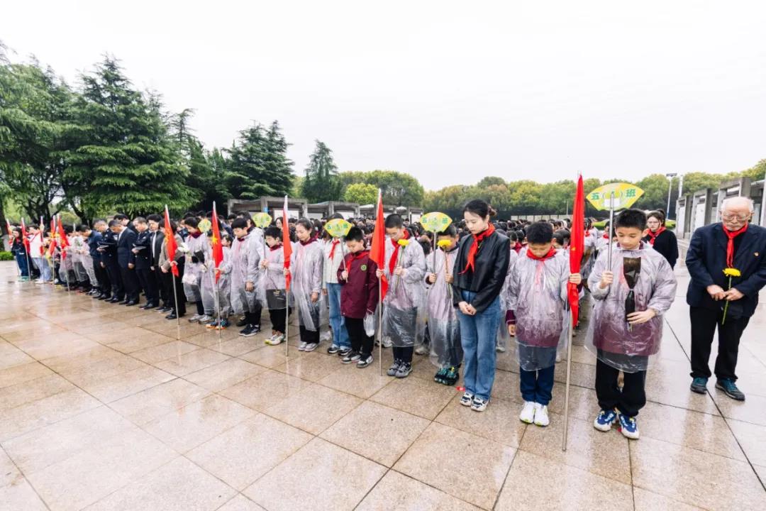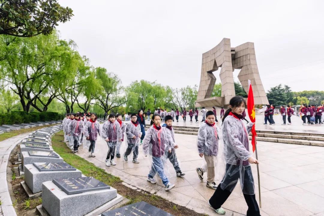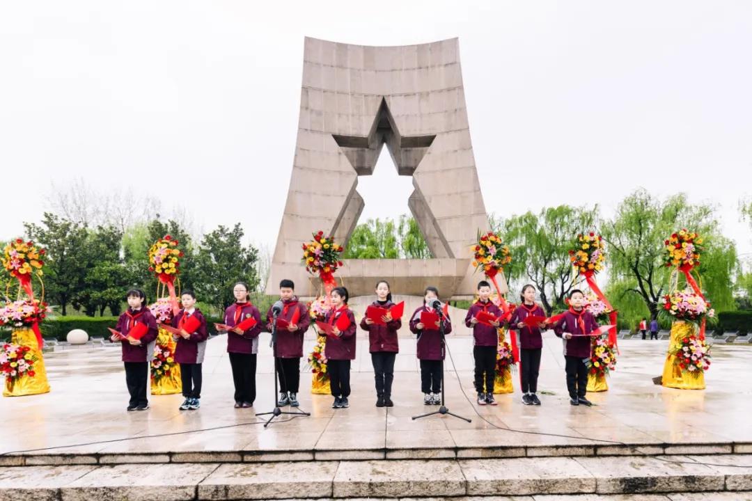 为深刻缅怀为国家独立、人民解放、社会主义革命与建设事业牺牲的先烈,弘扬爱国主义精神。4月3日上午,新北区退役军人事务局全体人员,常州出入境边防检查站、常州机场出入境边防检查站、区教育局、龙虎塘街道退役军人服务站代表以及龙虎塘实验小学关工委代表、五年级师生代表,在新北区革命烈士纪念广场,开展以“清明祭英烈,红色永传承”为主题的清明节祭扫活动。 上午8点整,五年级全体师生们整齐列队,在陈亚兰副校长和潘虹主任的带领下,一路踏着朗朗清风,伴着绵绵细雨,怀着无比尊崇的心情,朝着新北区革命烈士纪念广场徒步前进,传承英烈精神。 到达烈士纪念广场,在新北区退役军人事务局综合处马玲燕处长和龙虎塘实验小学队员孙昊文的主持下,全体人员伫立在烈士碑前肃穆瞻仰,奏唱国歌,拉开了祭扫仪式的序幕。大家默哀鞠躬,深刻缅怀为革命事业抛头颅、洒热血的先烈们,表达对革命先烈崇高的敬意和深切的哀思。 队员们集体合唱“中国少年先锋队队歌”——《我们是共产主义接班人》,歌声响彻长空,见证着队员们勇当接班人的决心。在这庄严肃穆的氛围里,与会的领导们为革命烈士碑敬献花圈,整理缎带,深切追思为革命事业长眠于此的先烈们,缅怀革命烈士的不朽功勋。 在烈士纪念碑前,队员们上了一堂沉浸式思政课,与老兵、老教师携手共讲战斗故事,共唱红色歌曲、共颂伟大祖国,一起缅怀先烈,寄托哀思。 龙虎塘实验小学关工委副主任、全国优秀教师殷明欣校长站在烈士碑前,举起右拳,鉴定地领呼。队员们紧跟举拳,“时刻准备着!”那铿锵有力的呼号声,是队员们对祖国、对英烈许下的铮铮誓言。 在低缓的哀乐中,与会领导和全体师生排着整齐的队伍,依次向烈士们敬献献花和亲手制作的小白花,表达哀悼与崇敬之情。祭扫活动后,少先队员们回到教室,共话活动感悟,也使得心中的理想更加丰满而坚定。 本次清明祭扫活动,队员们充分汲取了红色养分,坚定了新时代的新使命。相信,在未来的学习与生活中,他们必会把对革命先烈的追思转化成奋发进取的力量,踏着英烈的足迹砥砺前行、努力成长为能担负民族复兴重任的时代新人,为将来建设美丽中国贡献自己的力量。