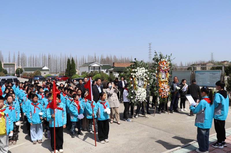 又是一年春草绿,又逢一年清明时。为进一步弘扬英烈精神,加强爱国主义教育,激发少先队员对先烈的崇敬之情,新北区魏村街道青城村委党总支、青城村委关工委、新北区孝都小学党支部和孝都小学五年级队员、辅导员,2024年3月29日下午来到西乐陵园,联合开展了“寻红色足迹,慰英烈忠魂”清明节祭扫活动。 鲜艳队旗迎风飘扬,宏亮的国歌响彻云空。庄严的国歌声缓缓落下,全体队员在悲壮的哀乐声中向革命烈士碑默哀,以表达对革命烈士的沉痛哀思、深切悼念和崇高敬意。随后,五年级的少先队员们用铿锵的《中国少年先锋队队歌》向家乡的革命烈士表明了继承革命传统、争做社会主义接班人的决心。接着,青城村委党总支党员代表和少先队代表缓步向前,向革命烈士敬献花圈,青城村委党支部郑红英副书记和孝都小学徐文娟校长为花圈整理挽联。