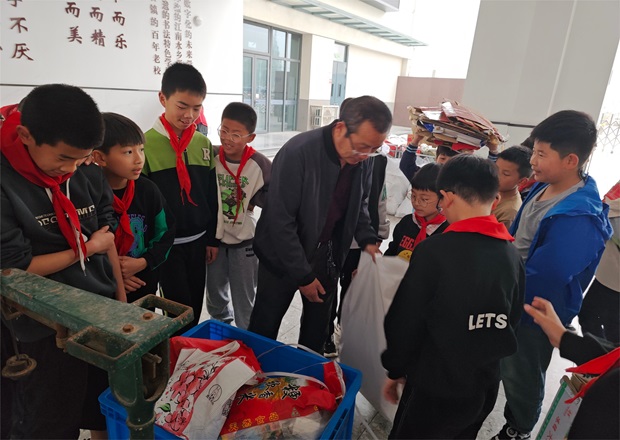 2024年4月12日,新北区万绥小学如火如荼地开展了一学期一度的“幸福小树”家校联系本公益活动。 今年活动与常州市“俭以养德”活动合并,从“惜纸”入手,开展废旧纸张和书籍集中捐献,在全校营造“勤俭节约始于心、珍惜资源践于行”的浓厚氛围。 收集废纸张和旧书籍活动持续了一周,在周五早晨大家笑容满面,各班井然有序地排队将废纸送到指定位置,师生协力完成称废纸、捐废纸活动。 活动过程出现了一幕幕暖心的画面:一年级小队员们不甘示弱,在辅导员老师的带领下亲自动手将废纸送到指定位置称重,不嫌重、不喊累。中高年级的队员们作为志愿者,帮助低年级的小队员抬废纸,力量满满,爱心满满。还有少先队员在送完废纸后主动将路上掉落的废纸一一拾起,堪称环保小先锋。 通过此次公益活动,队员们的责任感和积极性得到了有效提高,从日常生活的点滴做起,从小培养队员勤俭节约精神,不仅教育一个孩子,还能带动一个家庭,进而影响整个社会,有助于弘扬勤俭节约美德。