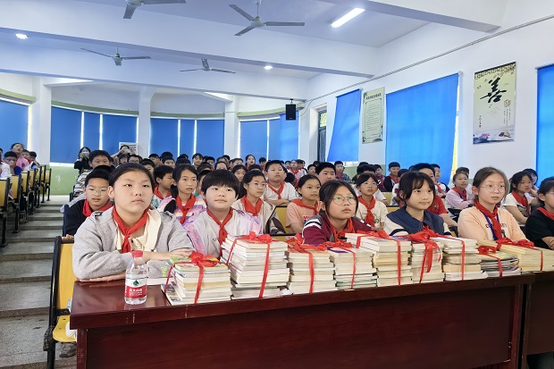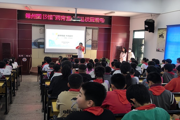 为了进一步加强少先队员的思想道德建设,积极培育和践行社会主义核心价值观,营造爱读书、读好书、善读书的浓厚氛围,5月9日下午,常州图书馆“润育童心”系列活动走进九里小学,由馆员徐千雪给四年级全体少先队员分享了“逆风前行 向阳而生”的精彩讲座。 徐千雪,是常图少儿部一名普通馆员。退役之前,她曾是一名游泳健儿,并多次获得全省、全国乃至国际大奖赛冠军,被江苏省政府授予一等功。 活动中,徐千雪分享了自己的成长故事。作为一名国家级花样游泳运动员,在20年的职业生涯中,伤痛和挫折不可避免。有一次训练的时候,她整个肩膀骨折了,但是眼看一周以后就要比赛,没法打石膏,只能咬咬牙继续训练,比赛时她就用一只手游完了全场。 她这样激励队员们:“人生本来就是一次减法,来日并不方长,我也希望,我的经历和故事能够激励更多的人,勇敢追求自己的梦想;坚定信念,哪怕重头再来,也许改变不了结果,但我们对得起自己,虽留有遗憾,但问心无愧!不负韶华!” 活动最后,徐千雪与队员们拍照留念。队员们纷纷表示要以冠军姐姐为榜样,努力学习,好好读书,报效祖国。