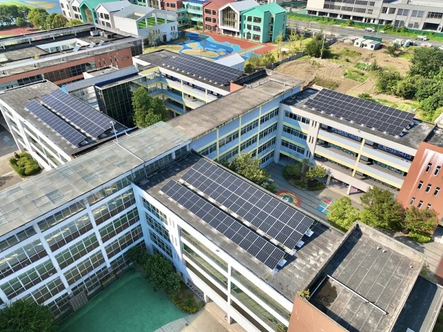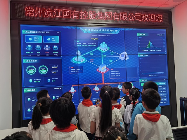 你们知道吗?常州也有一所“自己能发电”的学校啦! 俯瞰常州市新北区春江中心小学,一排排光伏板在学校屋顶上整齐划一的排列着,犹如一件件暗蓝色的“铠甲”,在阳光的照耀下闪闪发光。它以源源不断的绿色清洁的电能“守护”着学校的用电网络。 2023年8月,春江中心小学成功与常州孚瑞达能源有限公司(以下简称“孚瑞达”)签约屋顶光伏发电建设项目。这是滨开区首座采用屋顶分布式光伏工程的学校,也是孚瑞达深入实施可持续发展战略,推进滨开区全域光伏开发项目的建设项目之一。 队员们对这些屋顶的光伏板特别感兴趣,想知道这些光伏板有什么作用呢?“新能源探究”小队在前期参观天合光能的基础上,对光伏新能源做了研究,队员们了解到:光伏能源是以光伏效应为原理将太阳辐射能转换为电能。与传统的发电系统相比,光伏能源具有无污染、无噪声、无公害、维护成本低、使用寿命长等优点,近年来得到了飞速发展。 加装了光伏板后,学校有什么变化吗?队员们采访了春江小学姚灵娣校长,她告诉队员们:“学校的屋顶光伏项目,预计年发电量将超过22万千瓦时,可以大大降低我们小学的用电成本,每年可以给学校节约5万多元电费,这对一个小学来说已经是一笔不小的开支了。”除了缓解学校的经济压力,在环境保护上,光伏发电的作用也大着呢!科学辅导员后告诉队员们:“春江中心小学的屋顶光伏项目每年借助太阳能储存使用的发电量,相当于每年减少219340千克二氧化碳排放,也相当于每年植树11985棵。”队员们自豪地说:“我们春江小学也为世界环境保护贡献我们的力量呢!”