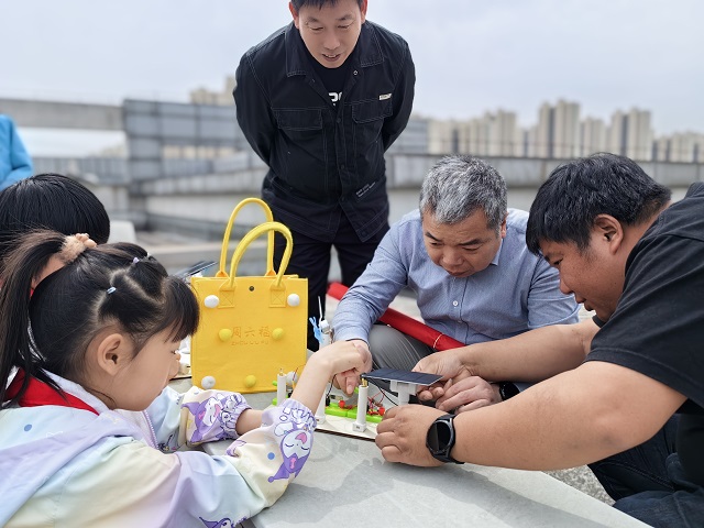 为深入了解屋顶光伏板的构成及作用,5月12日,“新能源探究”小队前往常州市孚瑞达能源有限公司,实地参观了解光伏板的构成,工程师叔叔热情接待了我们。 他们带领队员们参观了置于屋顶的超大太阳能光伏板,直观感受它的蓄电过程,观看了全方位光伏应用产业链,并有幸成为第一批见证到新北区首个“光储充”智慧能源微电网应用场景落地的队员。 在寻访的过程中,队员们了解到太阳能作为一种可再生能源,安全、清洁、取之不尽用之不竭,是上天赐予人类的礼物。那这样的礼物,原理是什么呢?对我们的生活有怎样的改善呢?队员们如好奇宝宝,充满了探究欲,现场工程师叔叔一一解答了队员们的疑问。 活动的最后,工程师叔叔也给小队员们送上了寄语,他说:“新时代的少先队员们,未来是你们的,我们要借助科学创新,加大这种环保新能源的利用,从而为绿色环保贡献自己的一份力。” 寻访过后,队员们对光伏电板特别感兴趣,在科学辅导员的带领下,也尝试借助光伏电板进行科学小实验。瞧,队员们自制太阳能小车,在阳光下活动自如;自制的太阳能浇水器,也为班级的绿植源源不断地输送着水源。 常州,作为“新能源之都”,一直致力于在新能源开发利用之路上“追光逐电”,为中国新能源产业生态构建探“路”。春江中心小学勇于创新、敢于实践、奋勇争先,借助能源公司“光伏+”模式,布局建设校园新能源发电新项目,为常州“新能源之都”的建设贡献自己的力量。