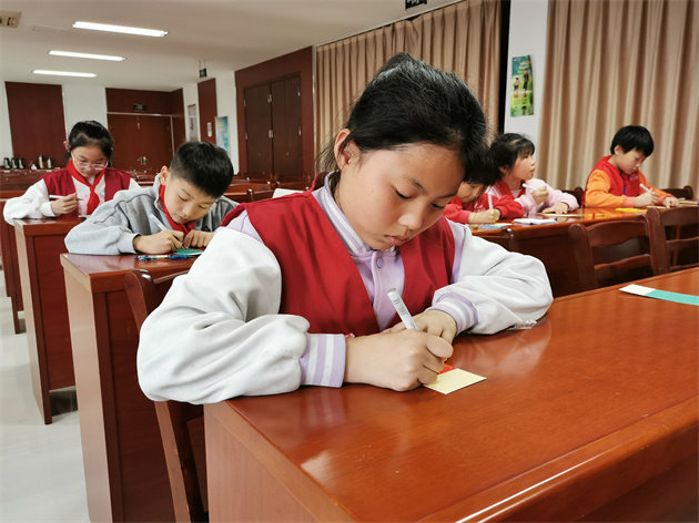 为加深队员们对革命精神的体悟,社区志愿者还在活动中分享了红色经典书目——《红岩》,带领他们朗诵了部分片段,通过朗读声表达了自己对先烈们的缅怀和崇敬。通过了解革命先烈江姐、许云峰的英勇事迹,队员们感受到了他们勇敢无畏、从容不迫、一心为国的革命精神,纷纷发表了自己的感悟。先烈们的英勇事迹值得铭记,他们优秀的革命精神更值得新一代少先队员传承、发扬。 活动最后,队员们在社区工作人员准备好的书签纸上写下了自己喜欢的格言,系上漂亮的穗子,一个个精美的书签将陪伴队员们静享美好的阅读时光。