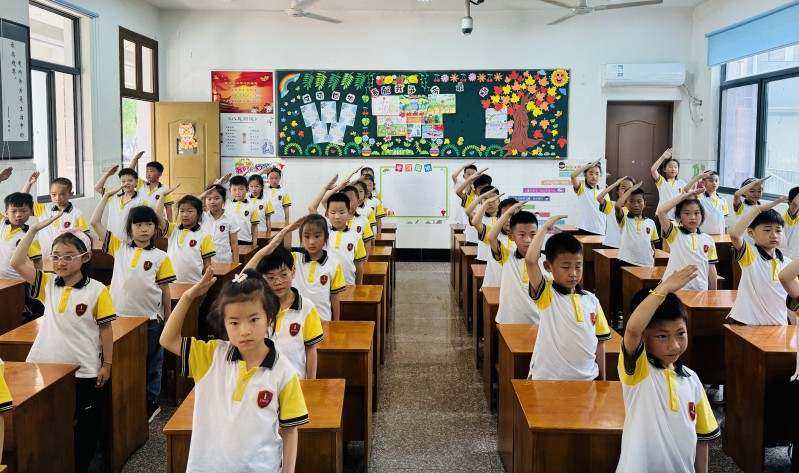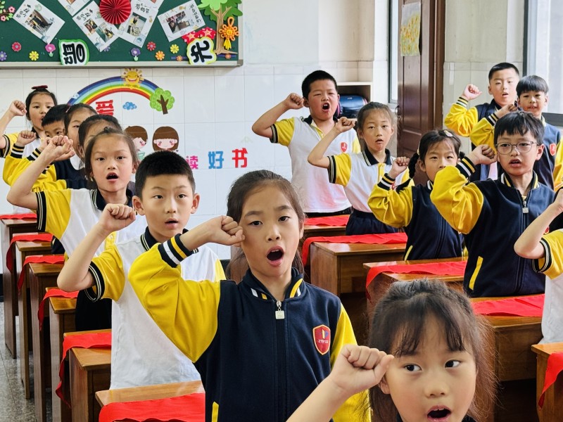 红星向党,颗颗闪亮,我们是共产主义接班人;好好学习,天天向上,向着鲜红的旗帜许下承诺:争做听党话、跟党走的中天娃与党一同成长! |