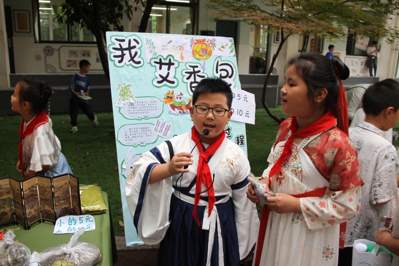 “中国有礼仪之大,故称夏;有章服之美,谓之华。” 岁逢六月百花艳,时至今日满园开。2024年5月31日上午,“六一儿童节”到来之际,百草园小学开展了主题为“盛世霓裳 礼乐中华” 汉服游园义卖集市活动,百草娃们齐聚成语广场和百草趣园,一起感受传统文化之丰富和享受传统服饰文化之美好,共赴一场夏日汉服游园会,度过了一个属于自己的有快乐、有收获的“六一儿童节”。 “罗衣飘飘,轻裾随风还。”百草学子们“着我汉家衣裳,兴我礼仪之邦”,来到精心布置的“义卖集市”,一场关于传统文化游园会的巨幅画卷徐徐展开。在这里,百草娃们是活动的组织者、是店铺的小老板、是步行街的顾客……人人都是主角,个个分工明确,共同参与、挑战未知、发现惊喜。 琳琅满目的商品令人目不暇接,摊位物品应有尽有,让人眼花缭乱。有的低价出售,有买有赠;有的套圈,有的投壶,有的盲盒抽奖……真是精彩纷呈。“义卖有价,爱心无价”“贩卖快乐”“奉旨摆摊”……现场金句频出,一句句创意的叫卖,为义卖活动现场增添了更多活力。