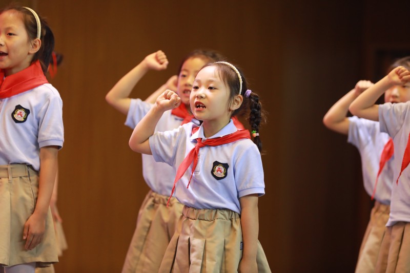 入队仪式的最后,一年级萌新们为大家带来了舞蹈表演《新时代好少年》,这不正与他们胸前刚刚飘扬的红领巾遥相呼应吗?期待他们茁壮成长,为祖国的建设添砖加瓦。