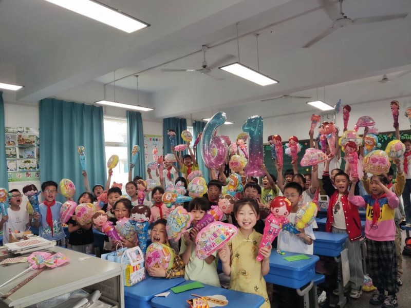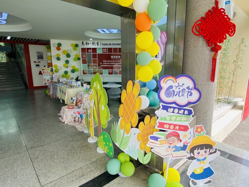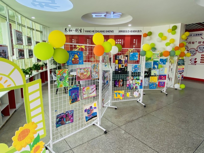 缤纷的气球、飘扬的彩旗将荷园布置得格外温馨。扬帆楼的过道两侧是“红领巾爱祖国”系列作品展示区。队员们富有童趣的绘画、手工作品、每个中队精心绘制的“英雄中队”连环画册成了最瞩目的风景。最美中国红,快乐的儿童节因为“红色”的装点变得意义非凡!