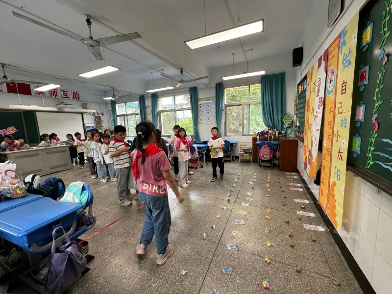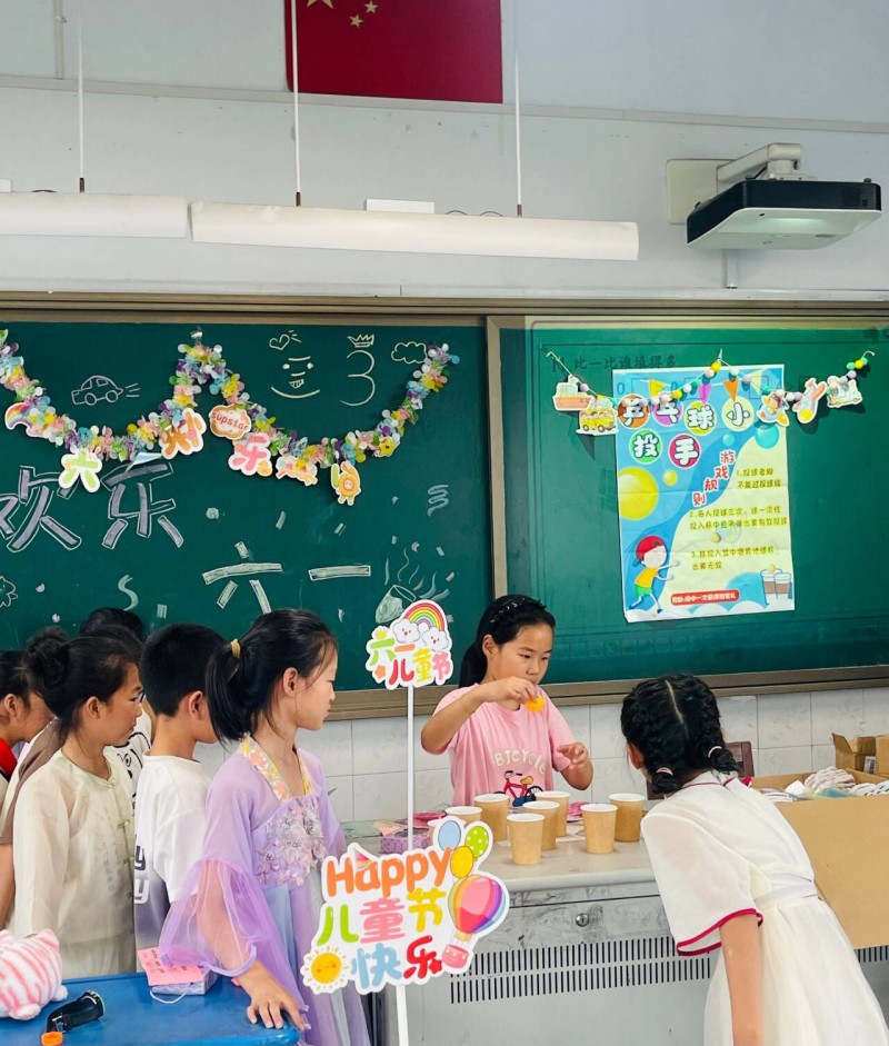 汇演结束后就到了队员们最喜欢的游园活动,每个中队都准备了竞技性、技巧性、趣味性的游戏,如:非遗投壶、趣味叠叠杯、吹乒乓球、欢乐套圈圈、纸杯翻翻乐等。每个中队门上显眼地粘贴着一张有关活动游戏的名称、规则的说明。活动开始前,每位同学将获得“游园券”一张,每张游园券有五次游玩机会。队员们利用手中的游园券参加活动,成功参与者即可获得相应奖品。校园里处处洋溢着欢乐气氛,鲜花与笑脸相映,歌声与笑声齐飞,整个校园成了一片欢腾的海洋。