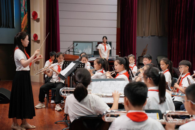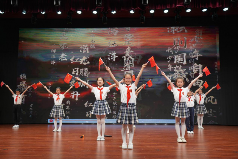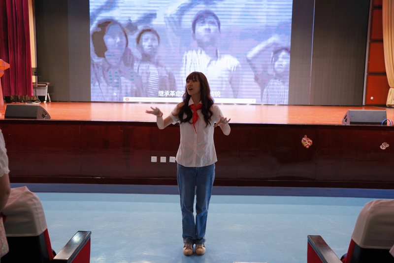 队员们在吕哲老师指挥的带领下,高唱《中国少年先锋队队歌》,嘹亮的歌声响彻整个会场,唱出了新队员们入队的决心。