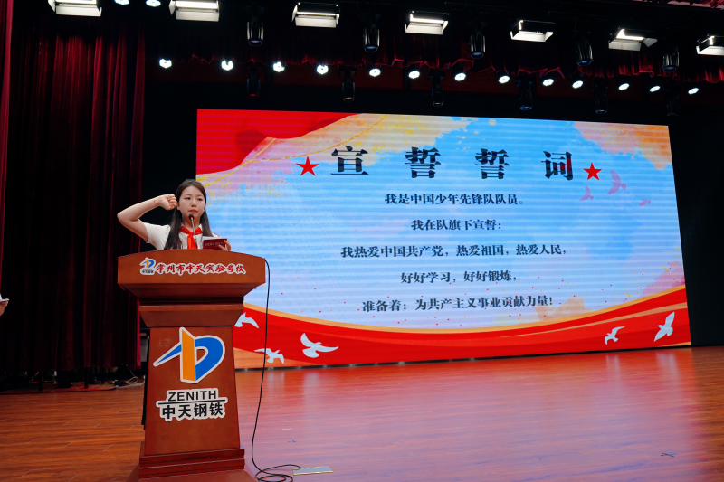 为了教育学生继承和发扬中国少年先锋队的光荣传统,培养学生健康向上、积极进取的精神,5月31日下午,常州市中天实验学校在报告厅举行了“童心向党 筑梦成长 争做新时代好队员”一年级新生入队仪式。