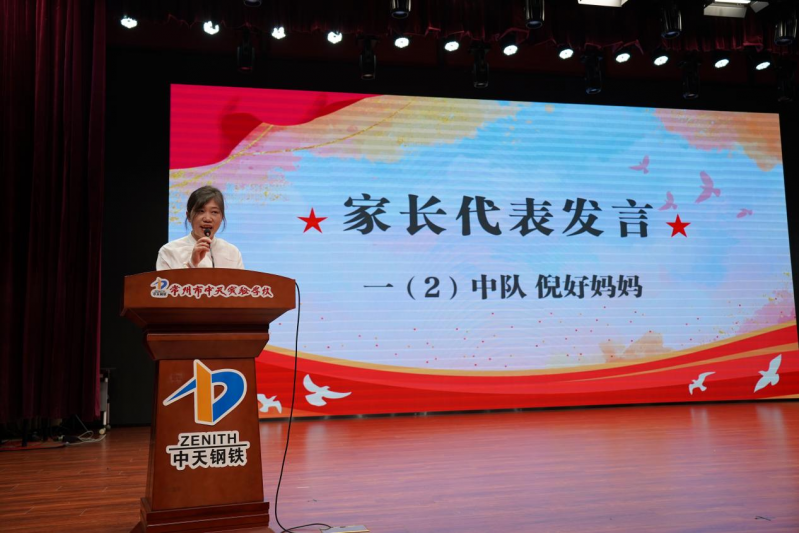 家长发言 深深祝福 家长代表一(2)中队倪好妈妈祝贺所有今天入队的同学们,祝贺他们拥有了“少先队员”这个光荣的称号,并向学校、向老师表示最诚挚的谢意。