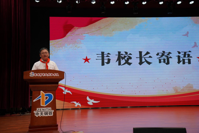 领导致辞 展望未来 韦国副校长见证了新队员入队的过程,对少先队员们提出殷切嘱托,希望队员们能够铭记少先队的光荣使命,在星星火炬旗帜的指引下茁壮成长!