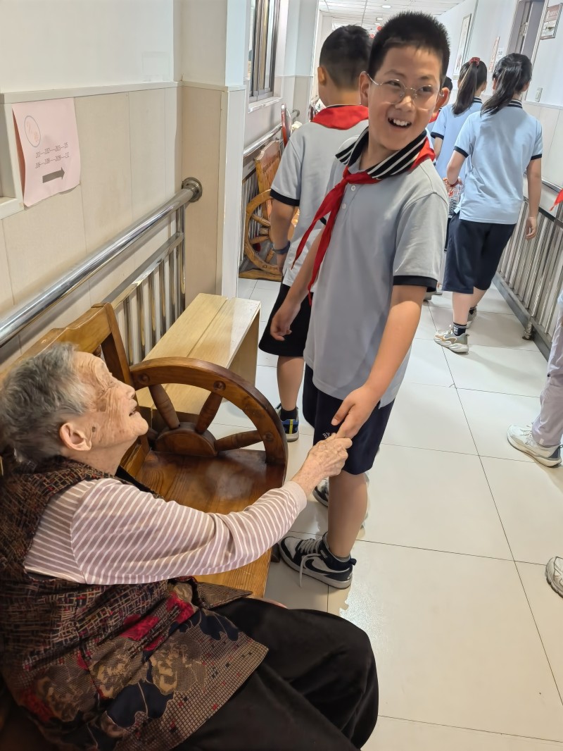 清晨,阳光洒在玲珑老年养护中心的院子里,队员们带着精心准备的小礼物和节目,满怀期待地走进了这个他们平时并不常来的地方。一进入敬老院,队员们就热情地与老人们打招呼,老人们看到孩子们的到来,脸上都露出了灿烂的笑容,仿佛自己也回到了童年时光。