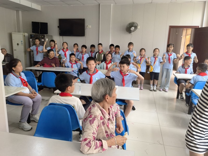 队员们为老人们表演了精心准备的节目:有欢快的舞蹈,有动听的歌唱……赢得了老人们的阵阵掌声。在表演间隙,队员们还与老人们进行了亲密的互动:他们围坐在老人身边,听他们讲述童年时的故事,分享自己的学习和生活;有的队员给老人们读报纸,有的队员还为老人捶背按摩,表达自己对长辈的关心和敬意。