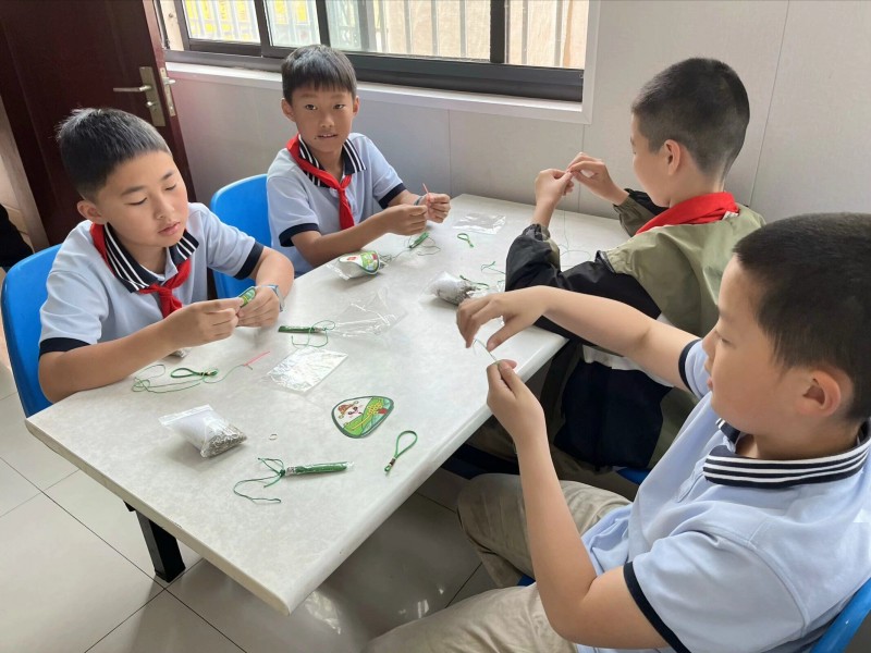 表演结束后,队员们还与老人们一起制作端午香囊。过程中,同学们和老人们欢声笑语,仿佛一家人般亲密无间。有的同学擅长手工,熟练地穿针引线,将香囊的各个部分巧妙地缝合在一起;有的同学虽然不太擅长,但有了老人们在一旁耐心指导,也制作成一个精美的香囊。