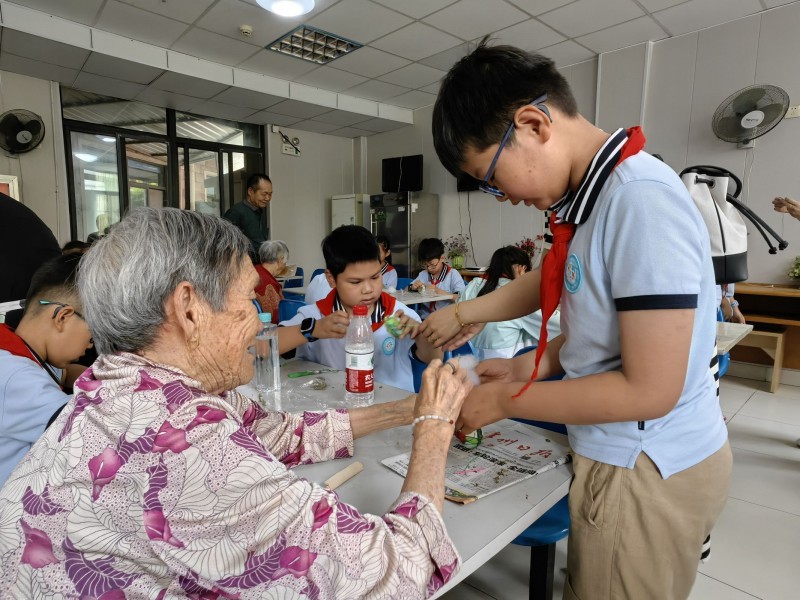 当香囊制作完成后,队员们纷纷展示自己的作品,赠与老人们留念,并互相送上了节日的祝福。这些香囊不仅承载着他们的辛勤劳动和创意,更见证了这次难忘的活动。