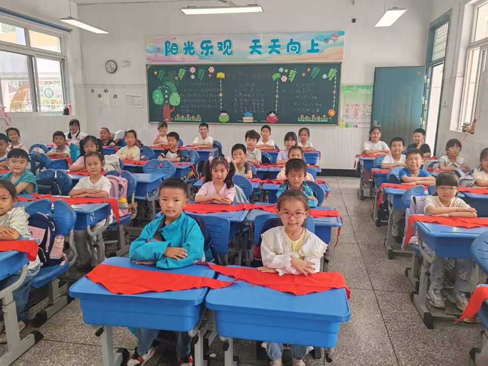 红领巾胸前飘,系满理想与希望。为了继承和发扬中国少年先锋队的光荣传统,培育学生积极向上的进取精神,孝都小学于5月31日上午举行了“红领巾爱祖国,红色薪火代代传”一年级少先队入队仪式。 一、队前教育我先知 一年级准队员们在中队辅导员的带领下,进行了队前教育,参与了丰富多彩的活动,如:学习“六知六会一做”,学唱少先队队歌《我们是共产主义接班人》,学习规范的少先队队礼,写入队申请书等,极大地激发了他们对少先队组织的向往。