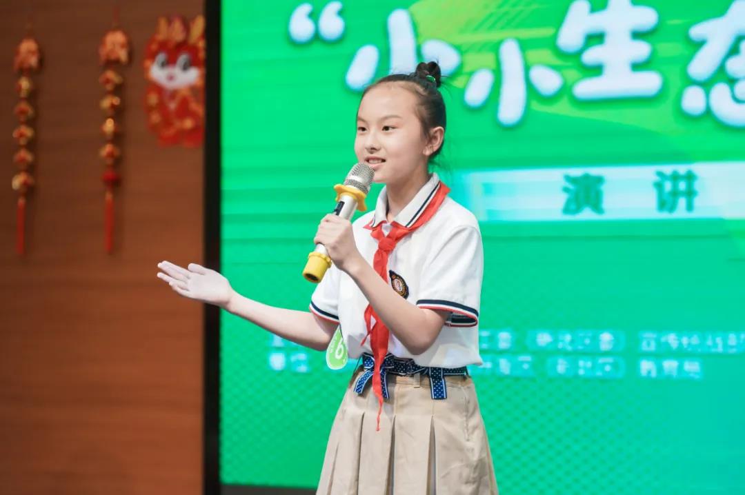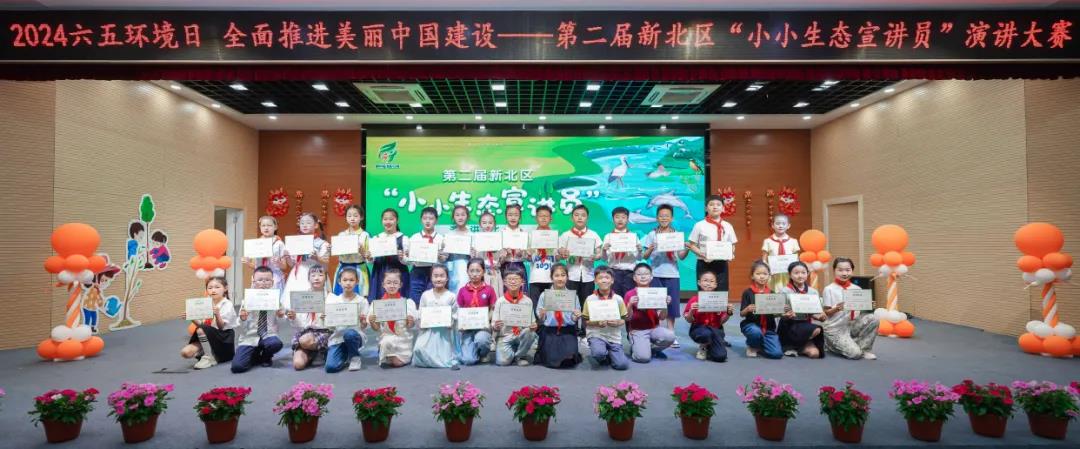 绿水青山就是金山银山。近年来,常州深入推进蓝天、碧水、净土三大保卫战,持续改善生态环境质量,不断绘就美丽常州新篇章。 生态文明的种子在孩子们的心里萌芽、长大,正是秉持了这一理念,第二届“小小生态宣讲员”演讲大赛应运而生,经过前期的深入动员,广泛征集,来自常州市河海实验学校、新北区龙虎塘实验小学、新北区三井实验小学、罗溪中心小学等14所学校的小选手脱颖而出。 6月3日下午,这群进入决赛“小小生态宣讲员”齐聚“国际生态学校”——新北区龙虎塘实验小学报告厅,声情并茂地演讲他们与守护生态环境的故事,14位入围选手在舞台上展示自己的风采,新北区龙虎塘实验小学的龙娃虎妞为大家展示了精彩的舞蹈《活力蔬果秀》,演绎了他们在校园小菜田里守护植物多样的丰富经历。常州广播电视台主持人、中国新闻奖、金话筒作品奖获得者陈珺为选手们点评。 2024年六五环境日以“全面推进美丽中国建设”为主题,龙虎塘实验小学愿与大家共同携起手来,更好学习宣传贯彻习近平生态文明思想,提高全社会生态文明意识,在深入打好污染防治攻坚战的道路上砥砺前行,以鲜明的态度、果断的措施、严格的标准,为建设美丽新北做出应有的贡献。