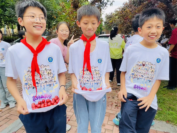 盼望着,盼望着,学校的李子成熟了,一颗颗红彤彤的果子缀满枝头。为弘扬少先队员们热爱劳动、珍惜劳动果实的美德,体验劳动的快乐和丰收的喜悦,2024年6月22日下午,香槟湖小学组织了队员们开展了“枝头有‘李’,果然有趣!”主题校园李子采摘节劳动教育实践活动。 潘静辅导员讲解了采摘注意事项。看着满树的果实,大家纷纷摩拳擦掌,跃跃欲试。队员们提着果箱,按照小组分工迫不及待地走进果园,有的负责采摘,有的负责搬运,分工明确,配合默契,好不热闹! 采摘时,队员们采摘的身影在果树旁来回穿梭,在辅导员老师、队员们的帮助下,你一个我一个,一筐大的、小的、带叶的、结对生长的李子装满了筐子。至于李子的香甜,只有身临其境的人,才会心醉神怡。队员们兴奋、喜悦之感由心底而发、溢于脸上。 分果子啦,队员们翘首以盼,小手轻轻捧起沉甸甸的“战利品”,望着红中透着紫,青中透着黄,色泽诱人的果子,闻一闻,嗯,真香!队员们脸上洋溢着丰收的喜悦。李子在中国人眼里代表着感恩。采摘结束后,队员们将摘得的李子相互分享并送给辛勤付出的辅导员老师,一同享受这份丰收的喜悦与甜蜜。 生活即教育,大自然是队员们最好的课堂,春有花,夏有果,秋有收,冬有藏。通过此次采摘实践活动的开展,学校以独特的校本教育资源,让队员们亲自体验了采摘李子的快乐,享受了采摘李子的过程,品味了大自然给予的盛宴,体验了劳动的快乐,享受了丰收的喜悦! 图文:王梦 审核:潘静 |